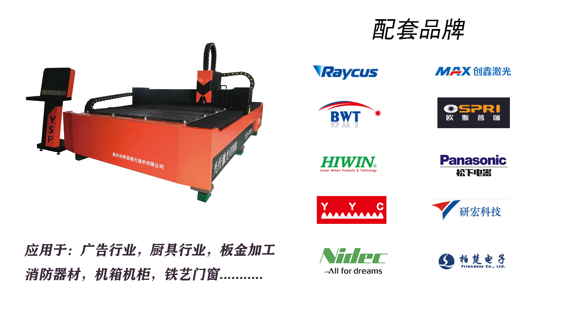 重慶依斯普激光技術股份有限公司 是一家科技型高新技術企業,公司位于重慶市渝北區空港大道1076號置尚金冠工業中心,占地面積約五千平方米,吸收了國外的先進的技術,專業研發、制造和銷售各類激光控制技術應用類產品。公司被評為創新基金重點培育企業,專精特新企業,通過了ISO9001質量管理體系認證,產品多次獲得重慶市高新技術產品證書及實用新型專利證書等。 依斯普激光的主導產品為激光切割機系列、激光焊接機系列,激光打標機及氣動打標機系列等,廣泛應用在